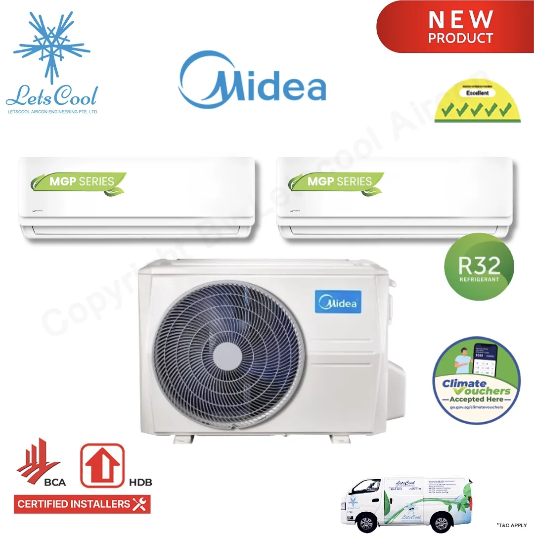 The Midea System 2 (MGP-2M21E / MGPID-09 / MGPID-09) is a compact and energy-efficient air conditioning system designed to cool two small rooms effectively. With 9,000 BTU + 9,000 BTU indoor units, it is perfect for bedrooms, study rooms, or small office spaces.